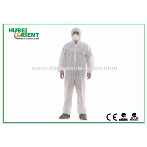 White Disposable Protective Coveralls With Hood And Feetcover By SMS PE Polypropylene For Clean Environment