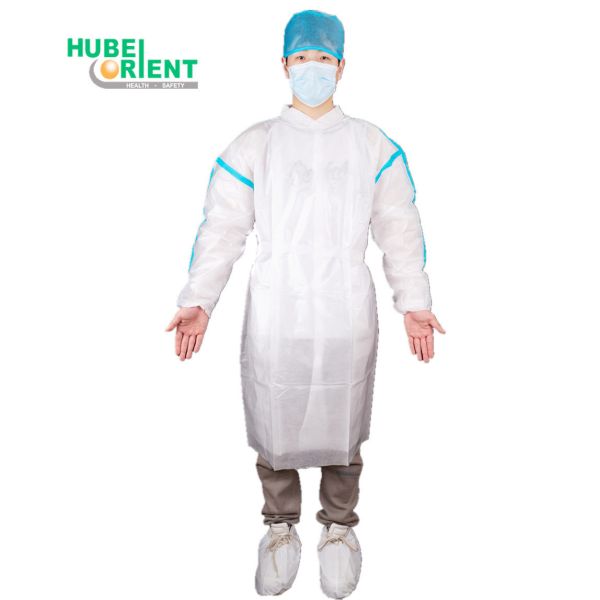 Excellent Resistance Hospital Use Disposable PP+PE Isolation Gown With Seam Tape